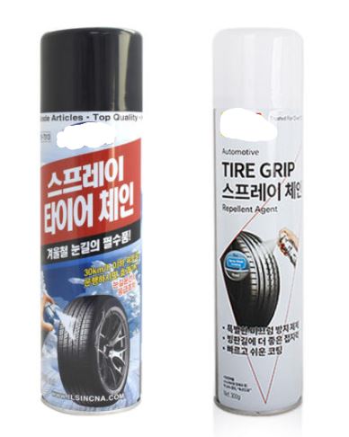 스프레이형 스노우 체인은 송진을 타이어 접지면에 뿌려 접지력을 높입니다.