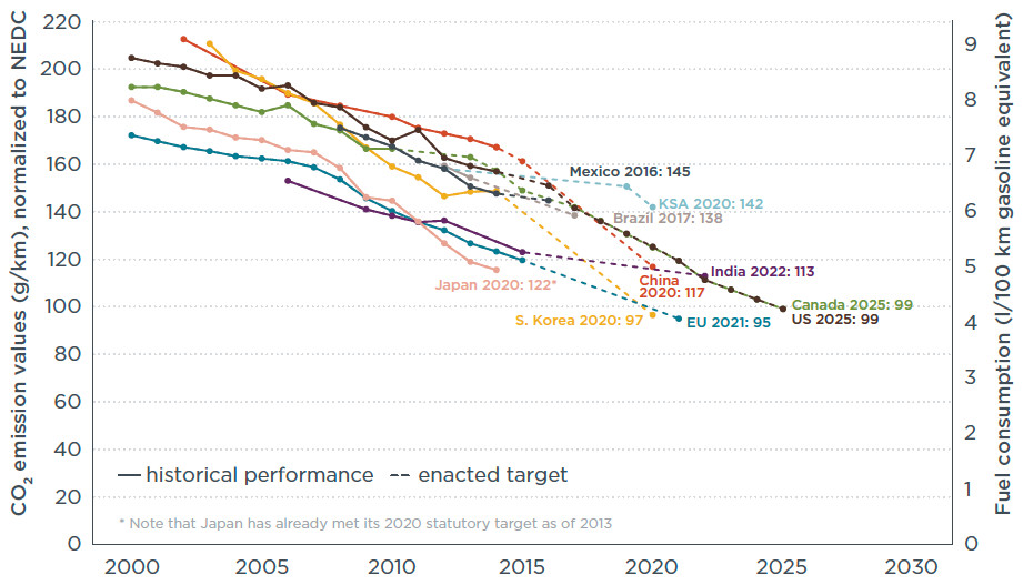 CO2 배출 제한 및 목표와 관련하여 전 세계 많은 국가에서 도로 차량에서 생성되는 CO2 양에 대한 규정이 있습니다.