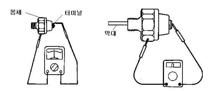 1) 저항계로 터미털과 몸체 사이의 통전을 점검하여 통전이 되면 오일 압력 스위치를 교환한다.