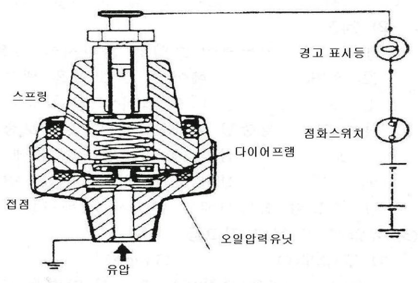 오일압력스위치는 엔진오일의 압력을 감시하는 역할을 한다.