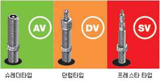 일반 생활자전거에 끼워지는 던롭 밸브(Dunlop Valve)와 자동차나 오토바이의 튜브에 쓰이는 슈레더 벨브(Schrader Valve)그리고 MTB 자전거에 많이 쓰이는 프레스타 벨브(Presta Valve)가 있다.