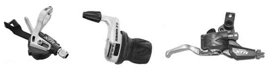 변속을 조정하는 형식이 손가락으로 눌러서 변속 하는 쉬프트 레버와 손으로 돌려서 변속하는 그립 쉬프트 레버 그리고 변속 레버와 브레이크 레버가 일체로 붙어 있는 일체형 레버도 있다. 이것을 듀얼 콘트롤 레버라고 한다.