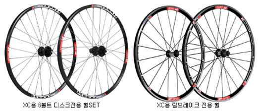 - XC 휠셋: 휠SET에는 디스크 전용휠SET(6볼트형, 센터락) 림브레이크 전용이 있다.