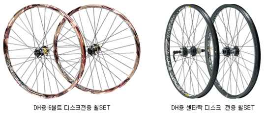 - DH 휠셋: 허브와 스포크, 림 등이 강하게 설계된 만큼 무게가 좀 무겁다.