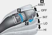 스위치를 운전자 방향으로 당기면 와셔액이 분출되면서 와이퍼가 수회 작동합니다. 스위치를 계속 당기고 있으면 당기고 있는 동안 계속 와이퍼가 작동하면서 와셔액이 분출됩니다.