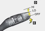 스위치를 운전자 방향으로 당기면 앞유리에 와셔액이 분출되면서 와이퍼가 수회 작동합니다. 스위치를 계속 당기고 있으면 당기고 있는 동안 계속 와이퍼가 작동하면서 와셔액이 분출됩니다.